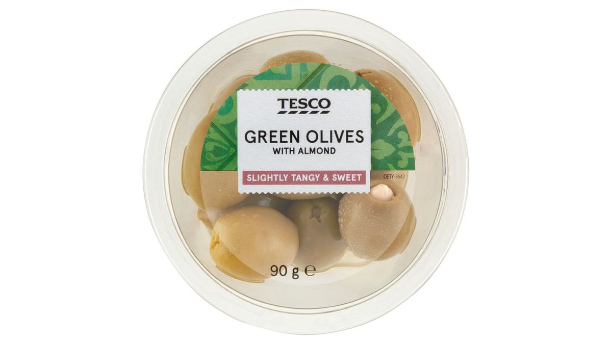 Tesco marinált, magozott zöld olívabogyó mandulával töltve 90 g