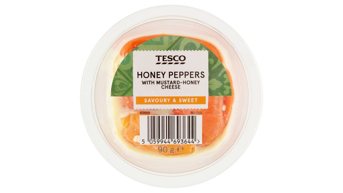 Tesco marinált sárgapaprika mézes-mustáros krémsajttal töltve 90 g