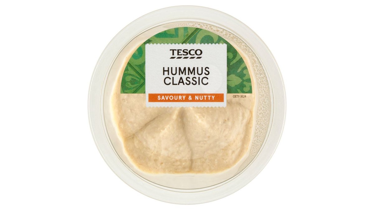 Tesco Hummus curry fűszerkeverékes csicseriborsókrém szezámmagkrémmel és rozskenyérrel 140 g