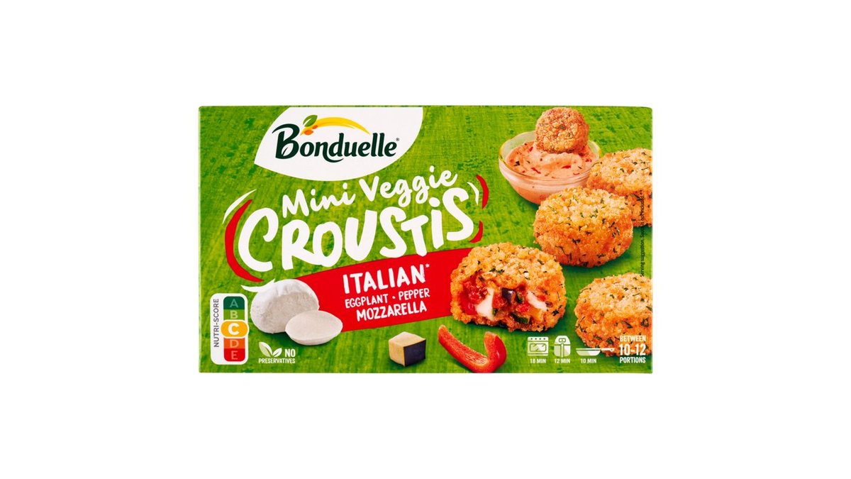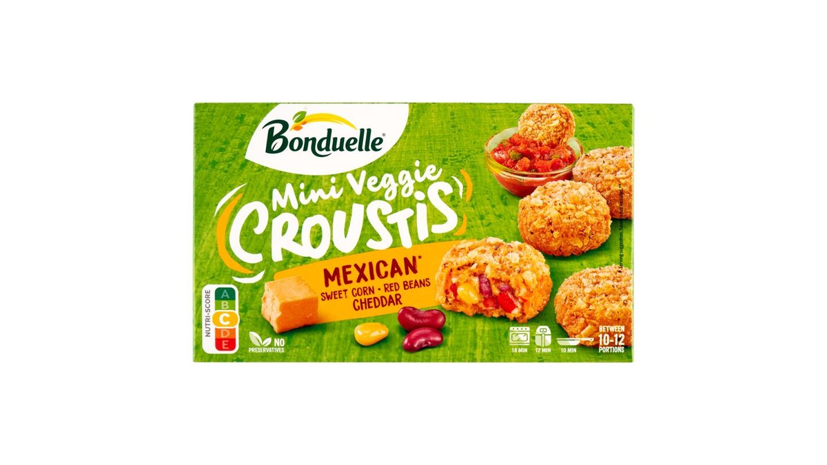 Bonduelle Mini Veggie Croustis gyorsfagyasztott panírozott és elősütött sajtos zöldségkorong 240 g