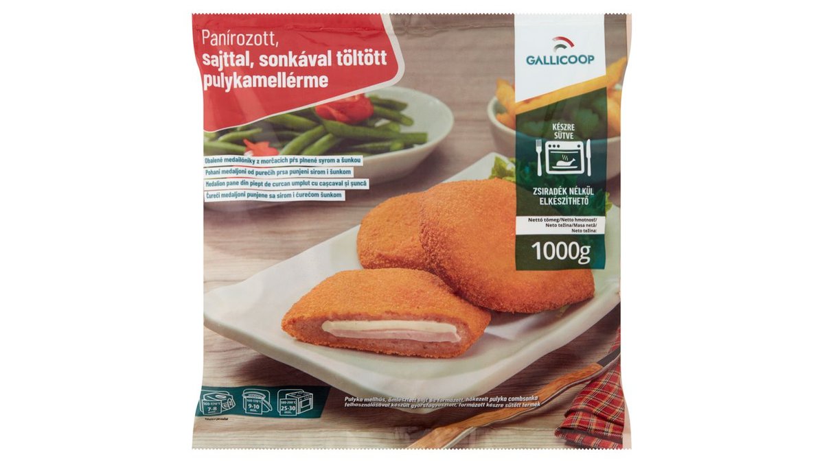 Gallicoop gyorsfagyasztott panírozott, sajttal, sonkával töltött pulykamellérme 1000 g