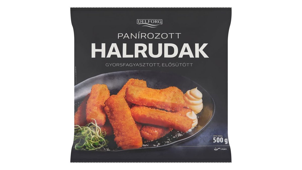 Delforg gyorsfagyasztott, elősütött panírozott halrudak 500 g