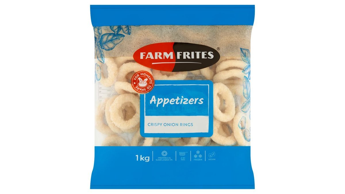 Farm Frites elősütött, gyorsfagyasztott félkész formázott panírozott hagymakarika 1 kg