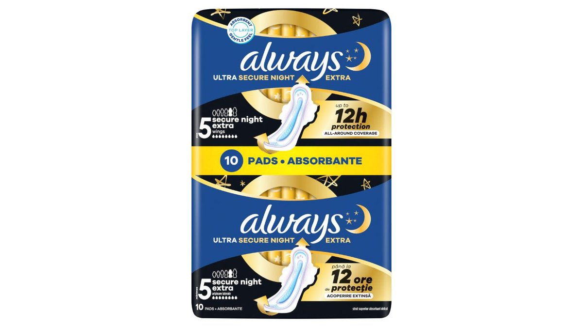 Always Ultra Secure Night Extra Egészségügyi Betét (5-ös Méret) Szárnyas Betét x 10]