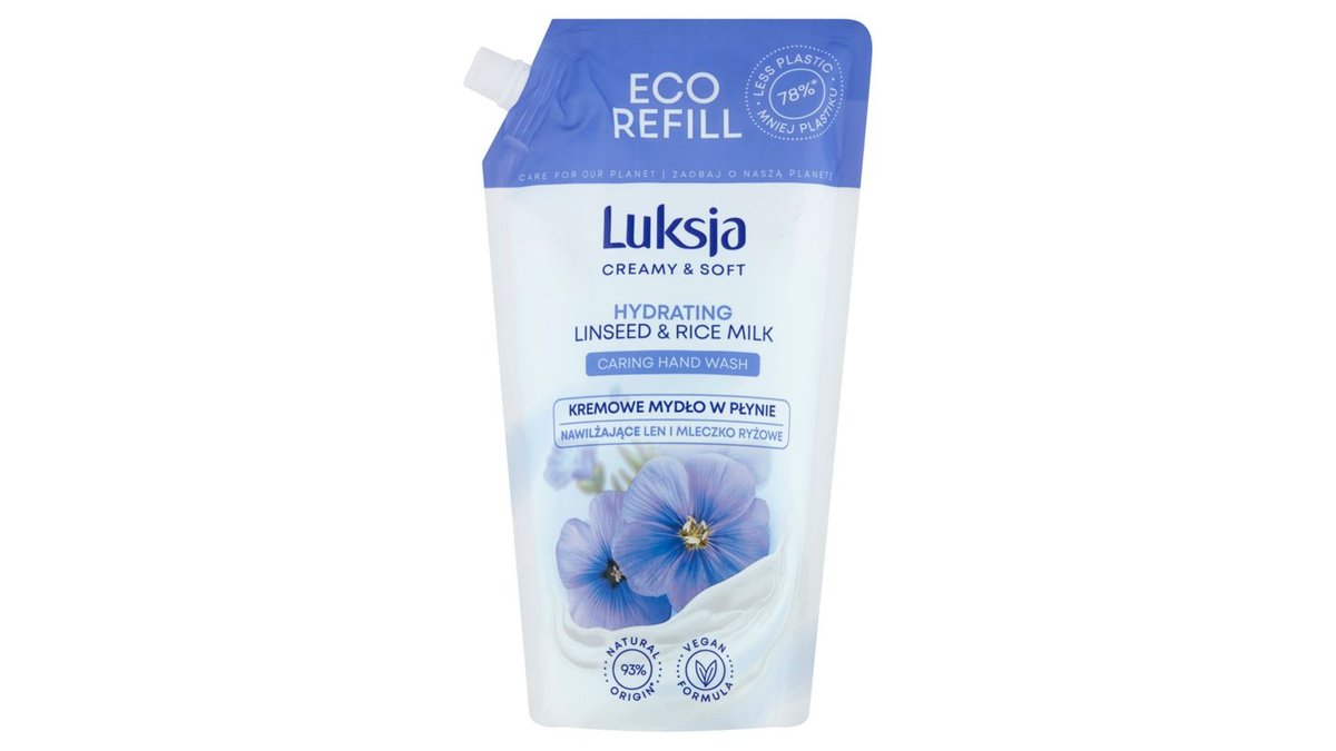 Luksja Creamy & Soft hidratáló folyékony szappan utántöltő lenmaggal és rizstejjel 900 ml