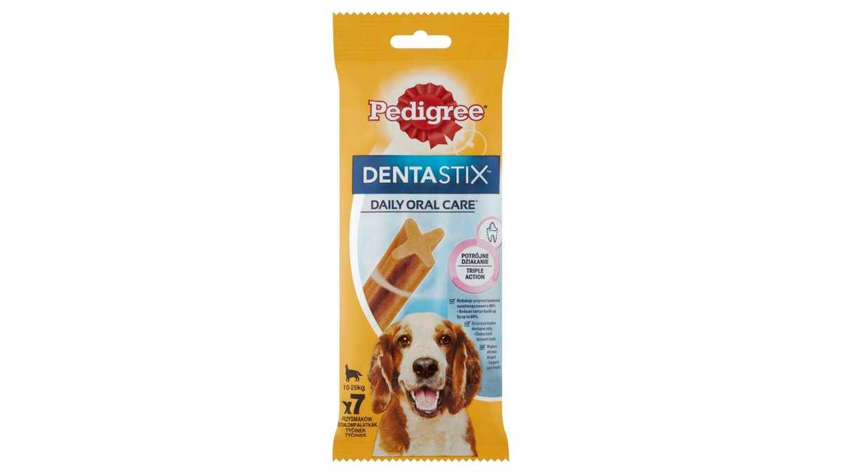 Pedigree DentaStix kiegészítő állateledel 10-25 kg-os, 4 hónapnál idősebb kutyák számára 7 db 180 g