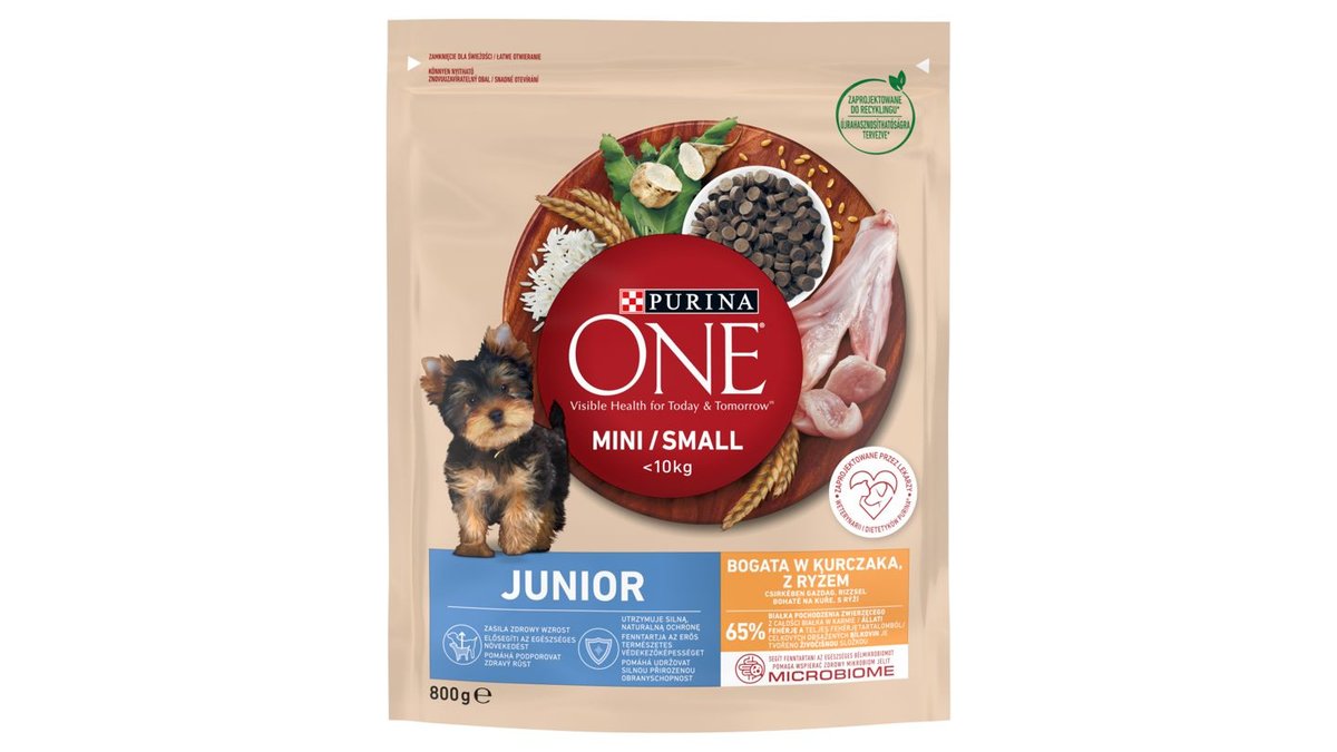 Purina One Junior teljes értékű állateledel kölyökkutyák számára csirkében gazdag, rizzsel 800 g