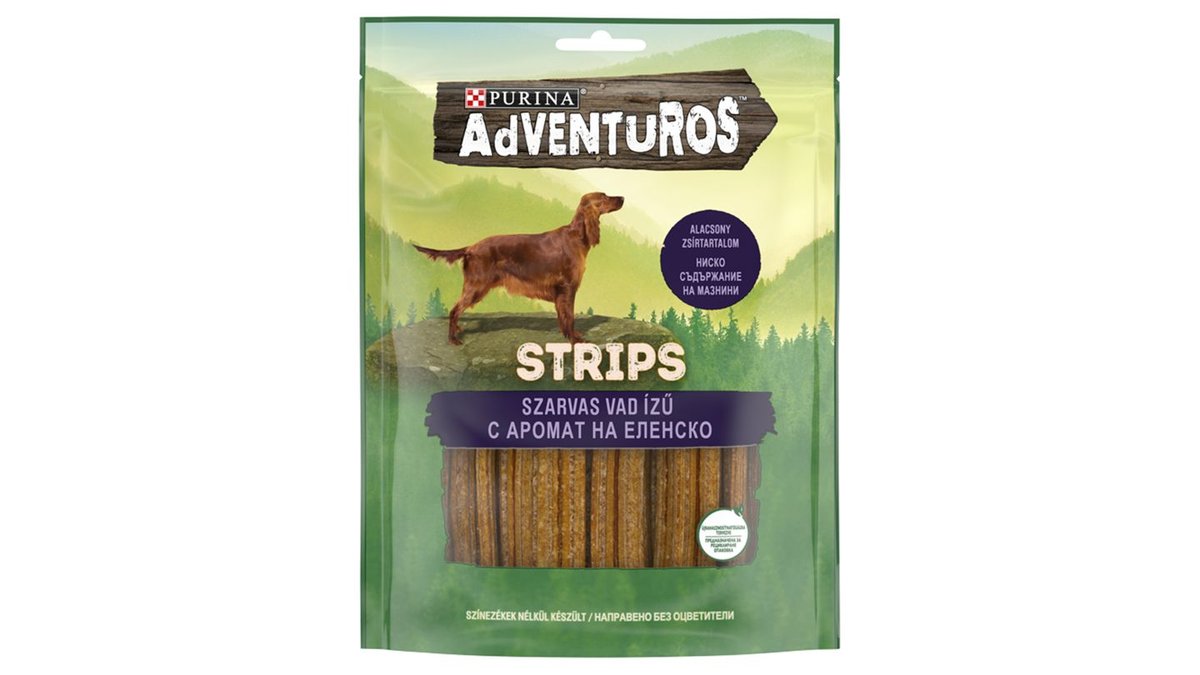 Purina Adventuros Strips szarvas, vad ízű kutya jutalomfalat 90 g