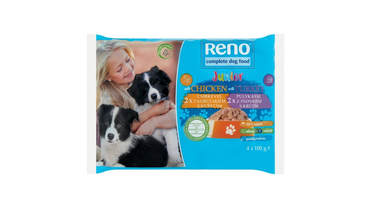 Reno Junior nedves kutyaeledel, kutyatáp kölyökkutyáknak szószban alutasakos 4 x 100 g