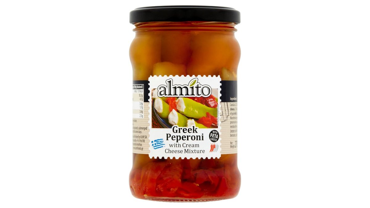 Almito krémsajt keverékkel töltött görög pepperoni canola olajban 270 g