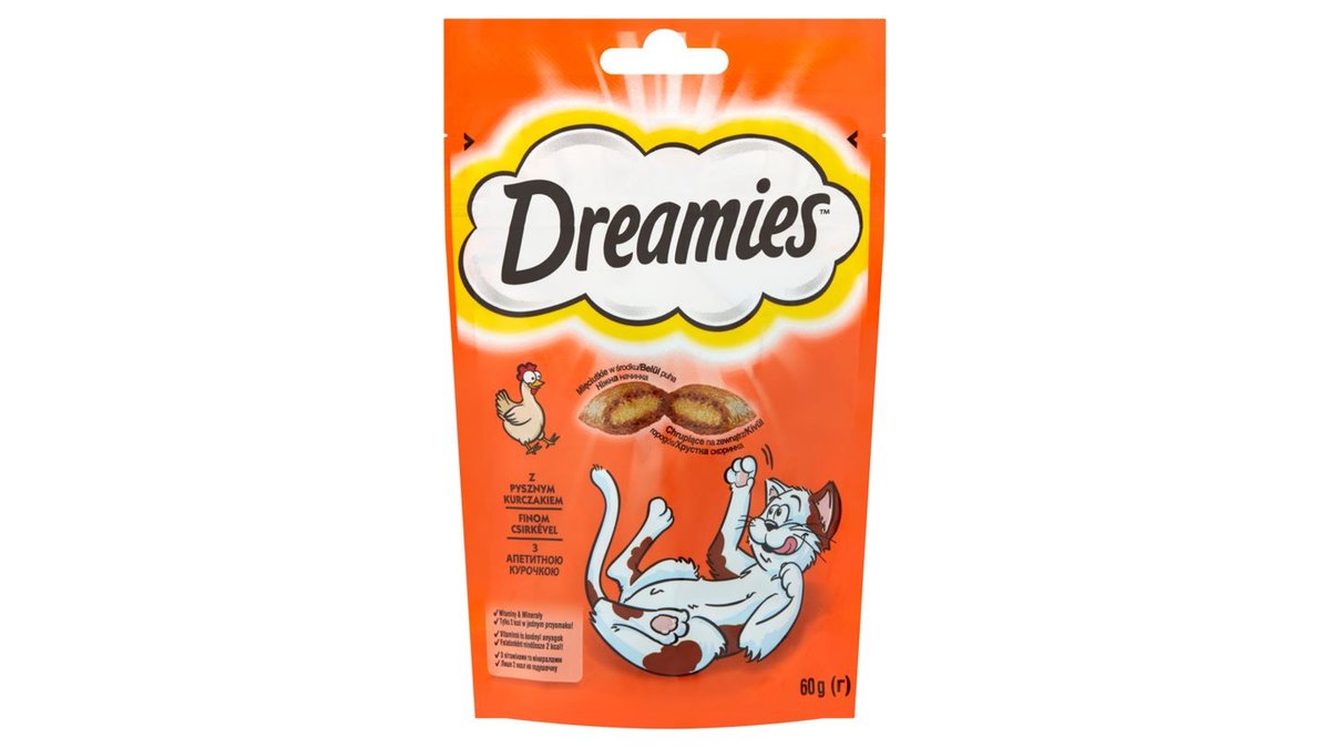 Dreamies kiegészítő macskaeledel csirkével felnőtt macskák & 8 hetesnél idősebb kölykök számára 60 g
