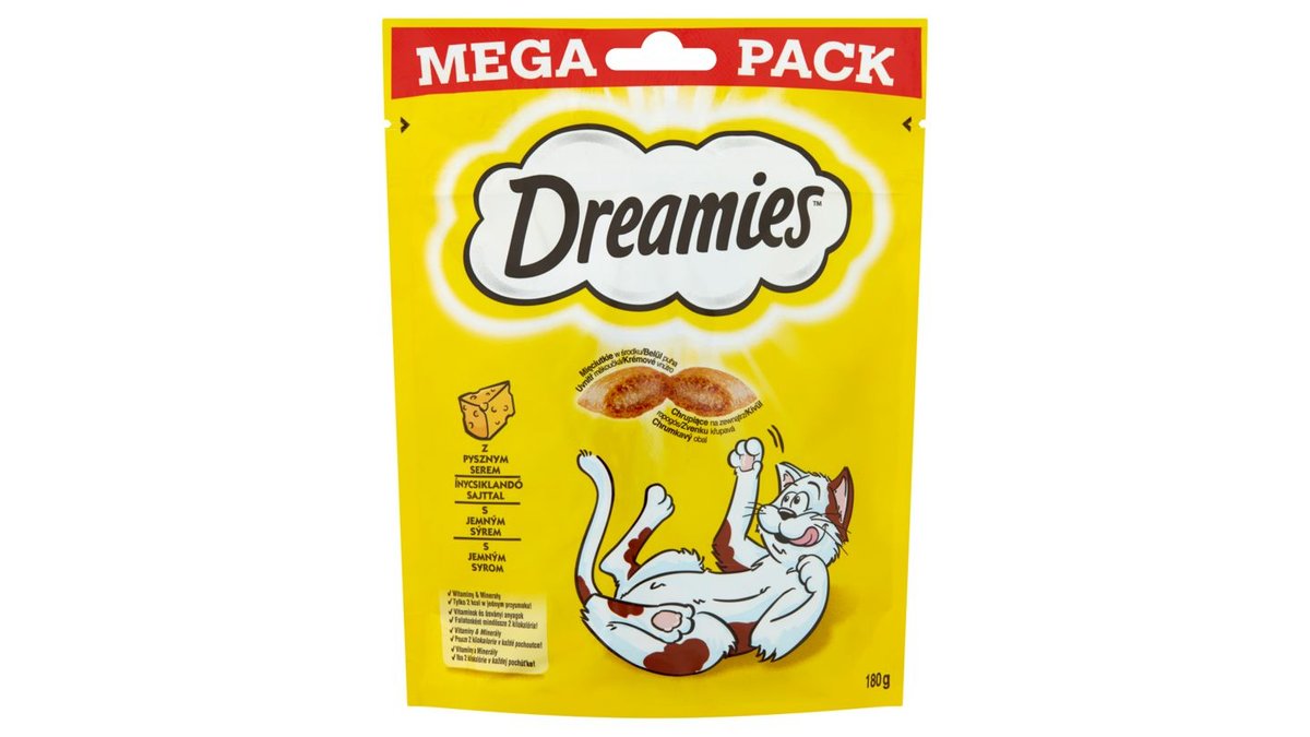Dreamies kiegészítő macskaeledel sajttal felnőtt macskák és 8 hetesnél idősebb kölykök számára 180 g