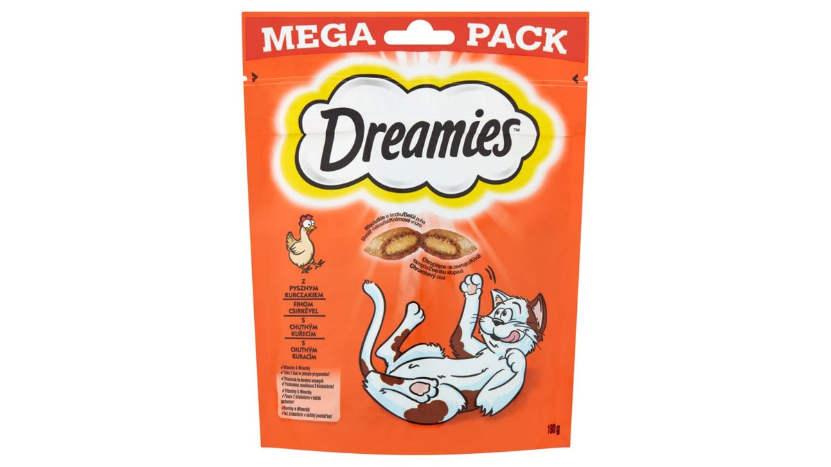 Dreamies kiegészítő macskaeledel csirkével felnőtt macskáknak & 8 hetesnél idősebb kölyköknek 180 g