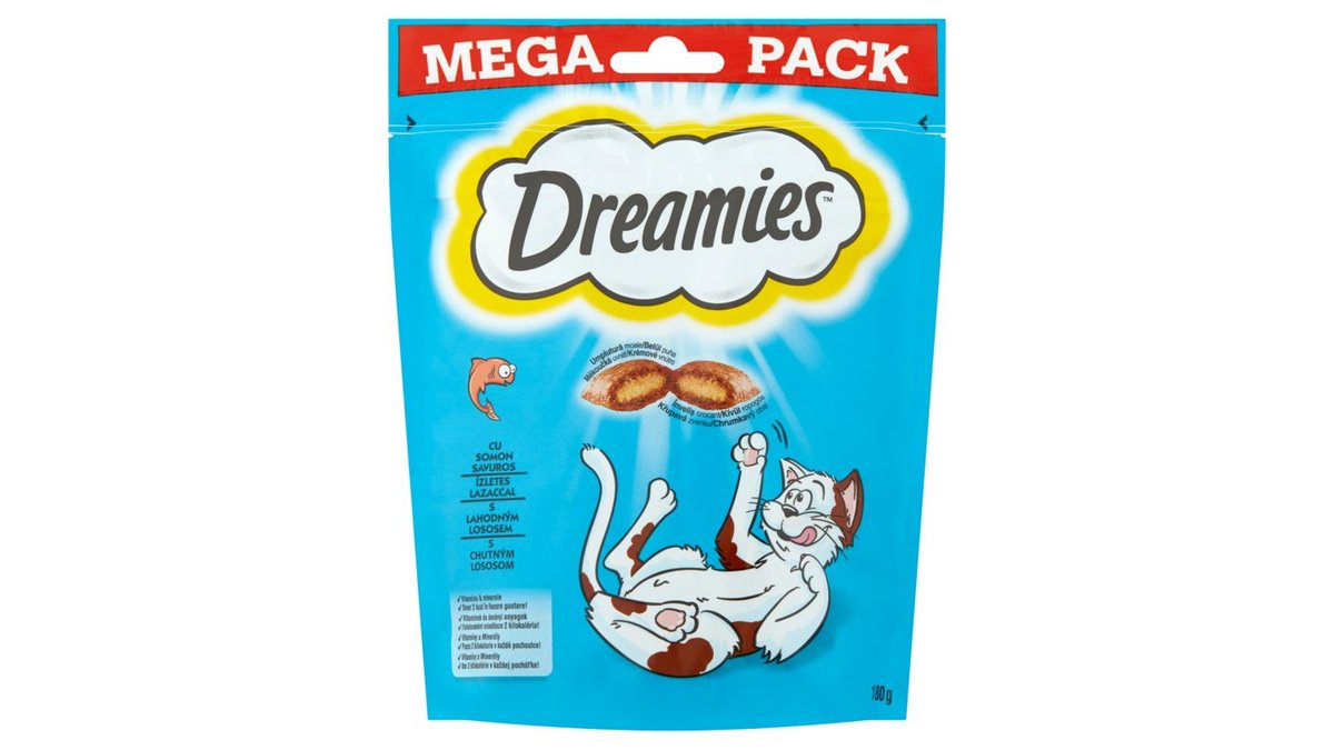 Dreamies kiegészítő macskaeledel lazaccal felnőtt macskák & 8 hetesnél idősebb kölykök számára 180 g