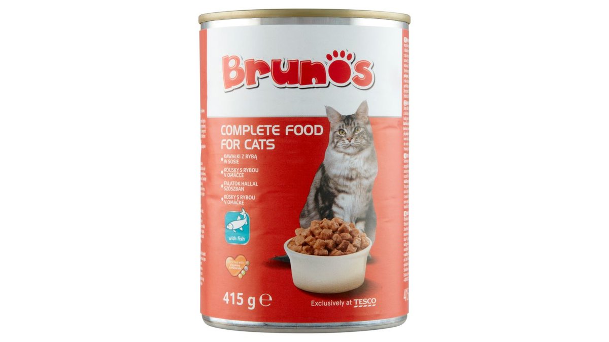 Brunos teljes értékű állateledel felnőtt macskák számára, falatok hallal szószban 415 g