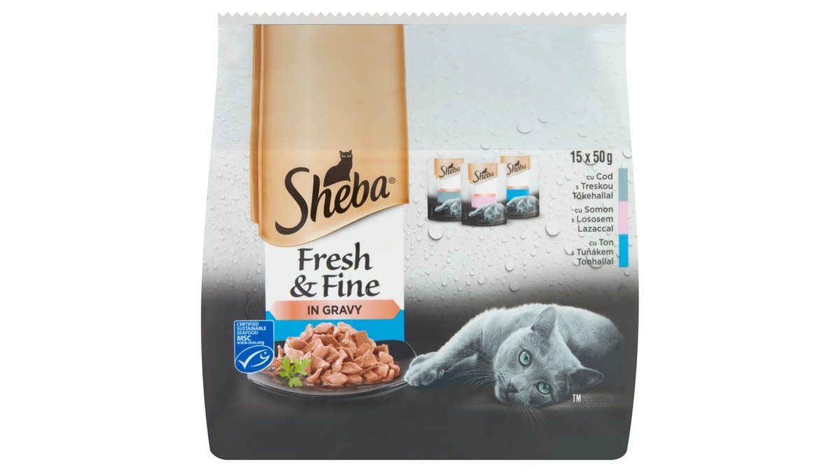 Sheba Fresh & Fine halas válogatás mártásban felnőtt macskák számára 15 x 50 g (750 g)