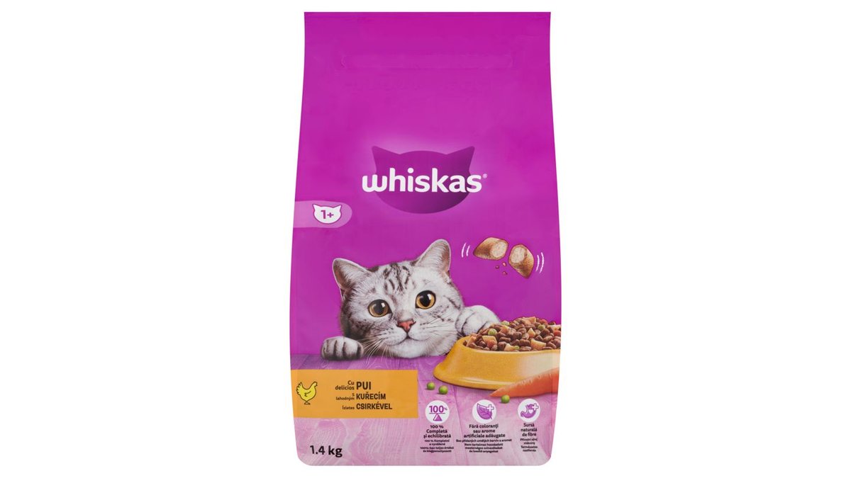 Whiskas 1+ teljes értékű szárazeledel felnőtt macskák számára csirkével 1,4 kg