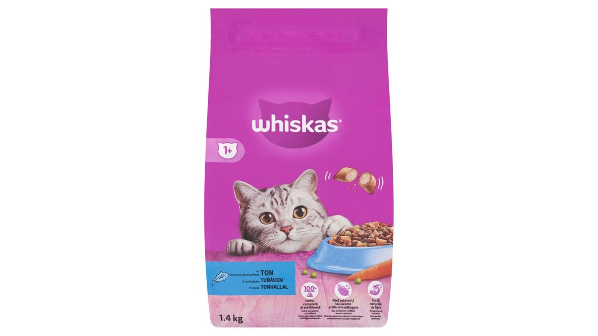 Whiskas 1+ teljes értékű szárazeledel felnőtt macskák számára tonhallal 1,4 kg