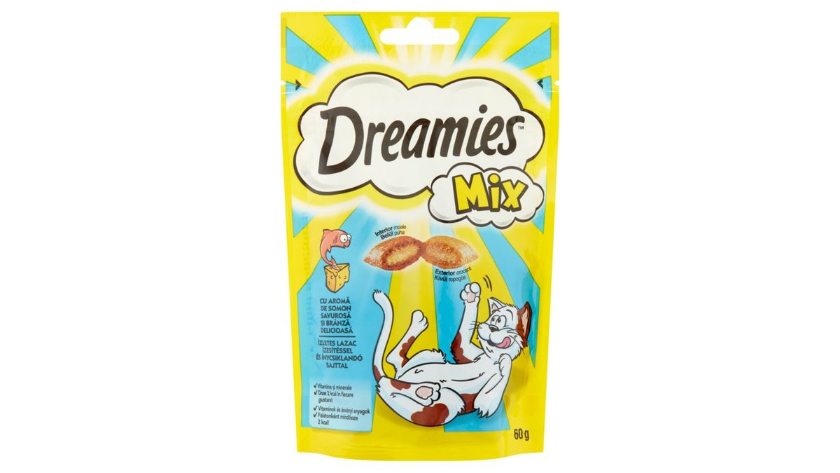 Dreamies Mix kiegészítő macskaeledel felnőtt macskák és 8 hetesnél idősebb kölykök számára 60 g