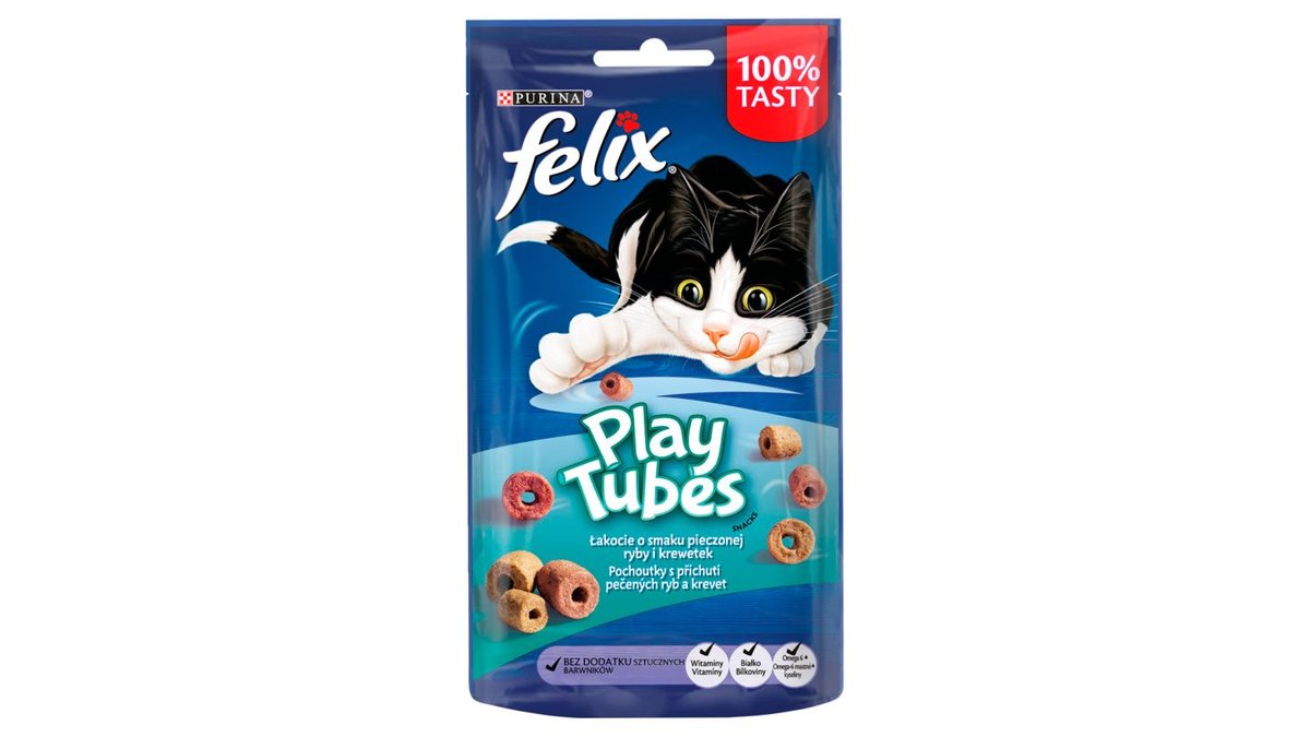 Purina Felix Play Tubes hal és garnélarák ízű macska jutalomfalat 50 g
