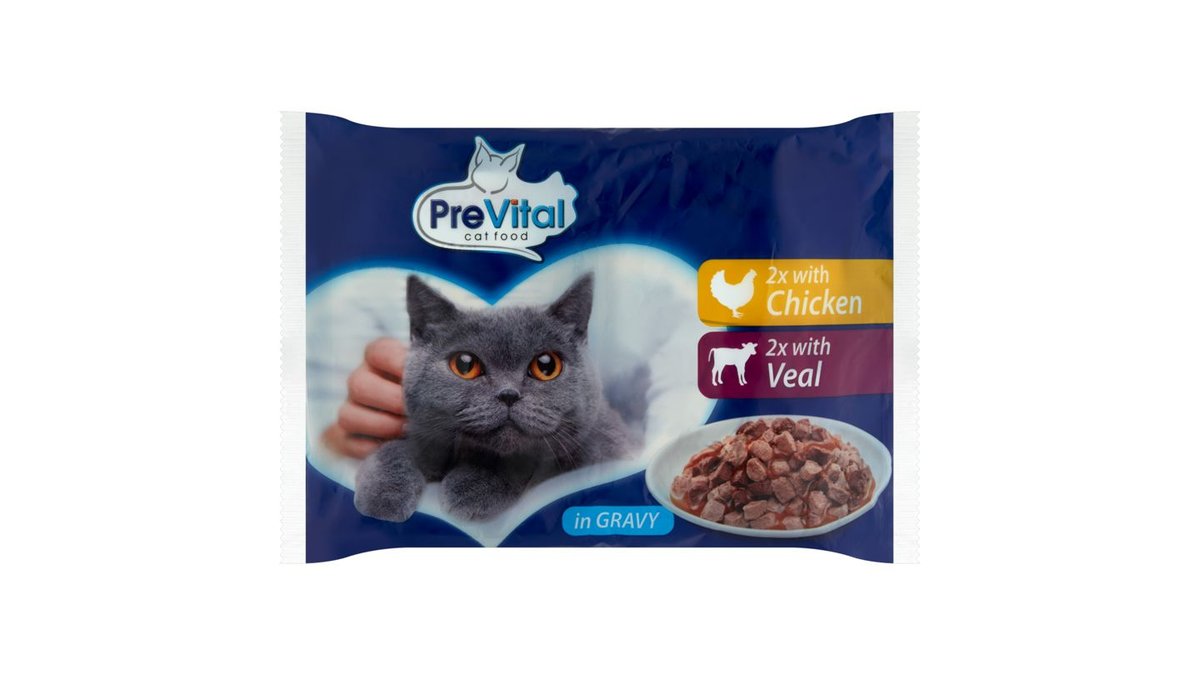 PreVital nedves macskaeledel, macskatáp felnőtt macskáknak szószban alutasakos 4 x 100 g