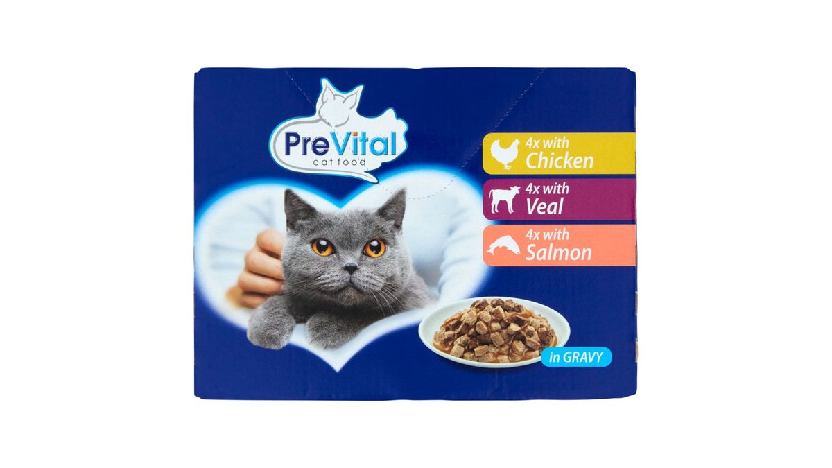 PreVital nedves macskaeledel, macskatáp felnőtt macskáknak szószban alutasakos 12 x 100 g