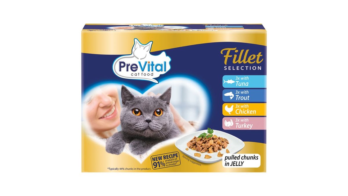 PreVital Fillet Selection nedves macskaeledel, macskatáp felnőtt macskáknak alutasakos 12 x 85 g