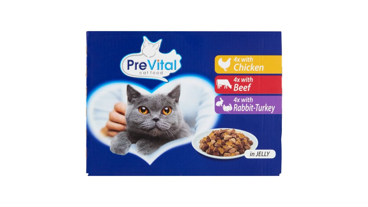 PreVital nedves macskaeledel, macskatáp felnőtt macskáknak aszpikban alutasakos 12 x 100 g