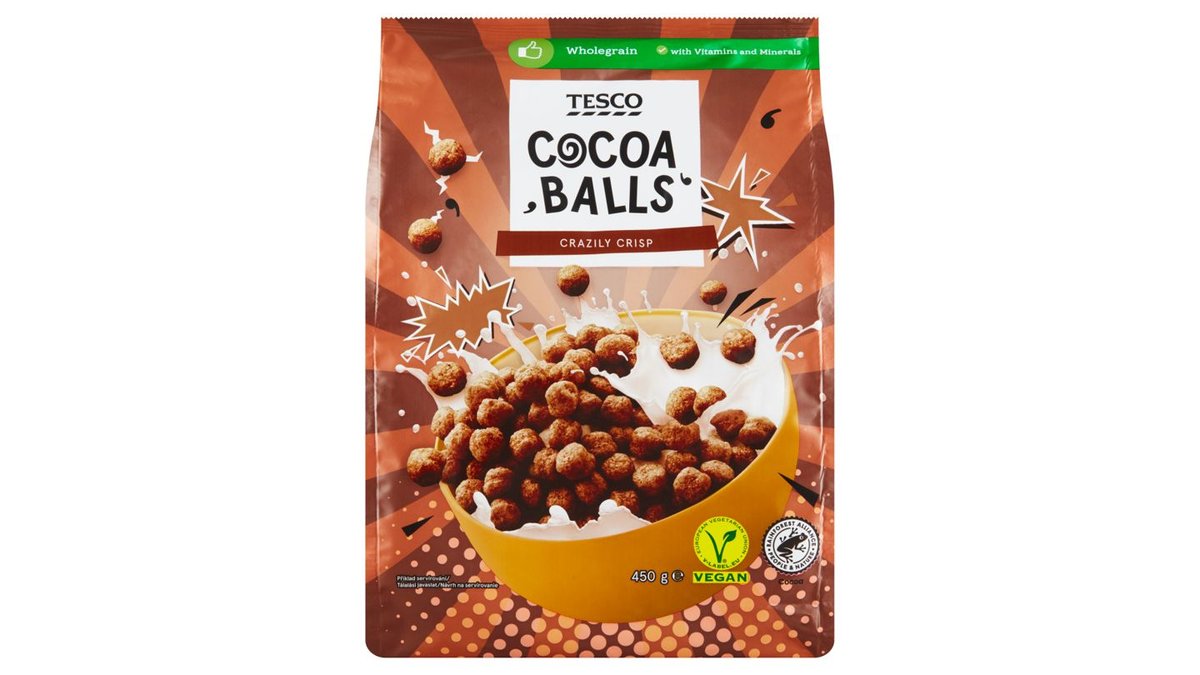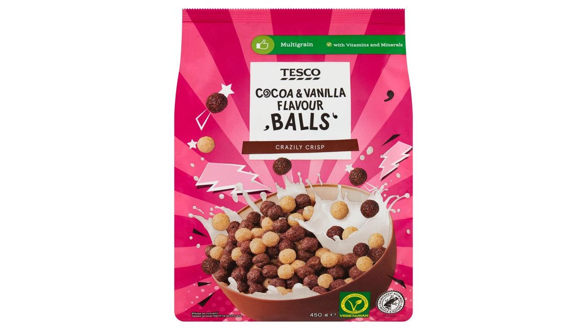 Tesco Balls kakaós és vaníliaízű gabonapehely hozzáadott vitaminokkal és vassal 450 g