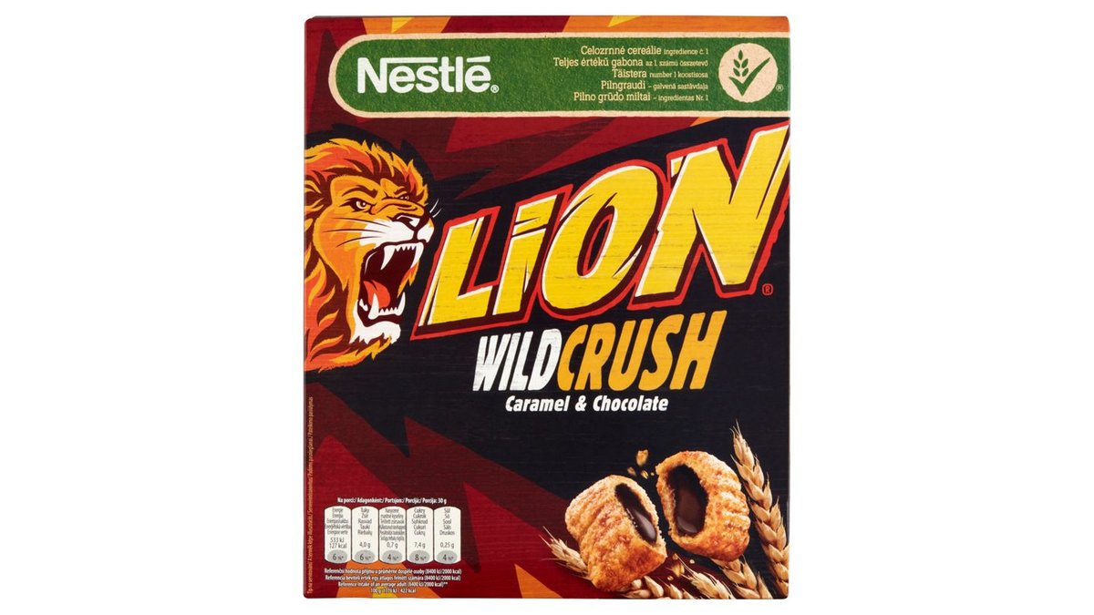 Nestlé Lion Wild Crush karamell- és csokoládéízű krémmel töltött ropogós gabonapehely 360 g