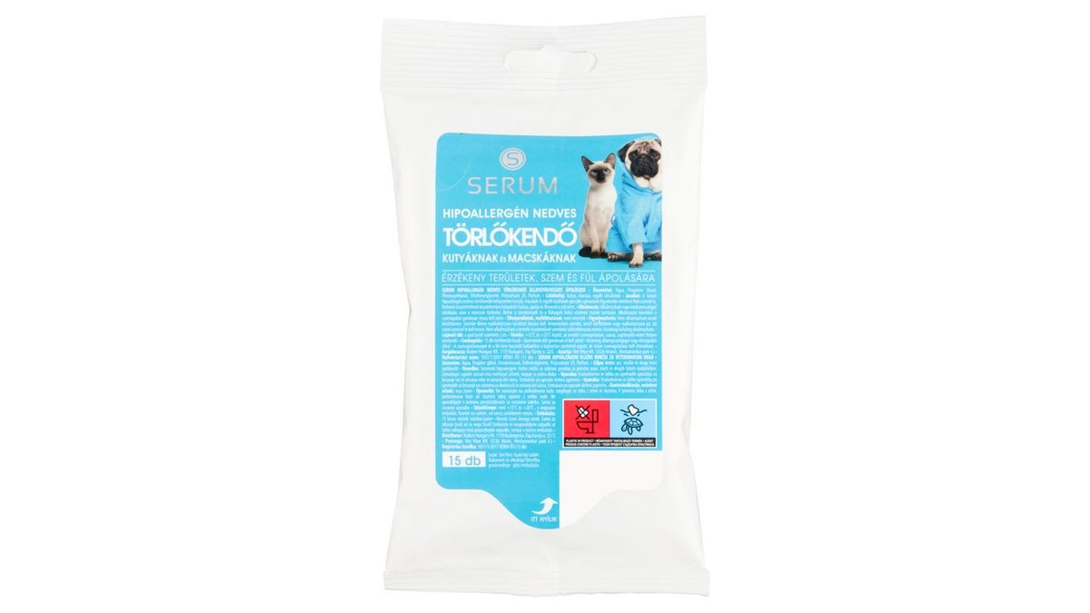 Serum hipoallergén nedves törlőkendő kutyáknak és macskáknak 15 db