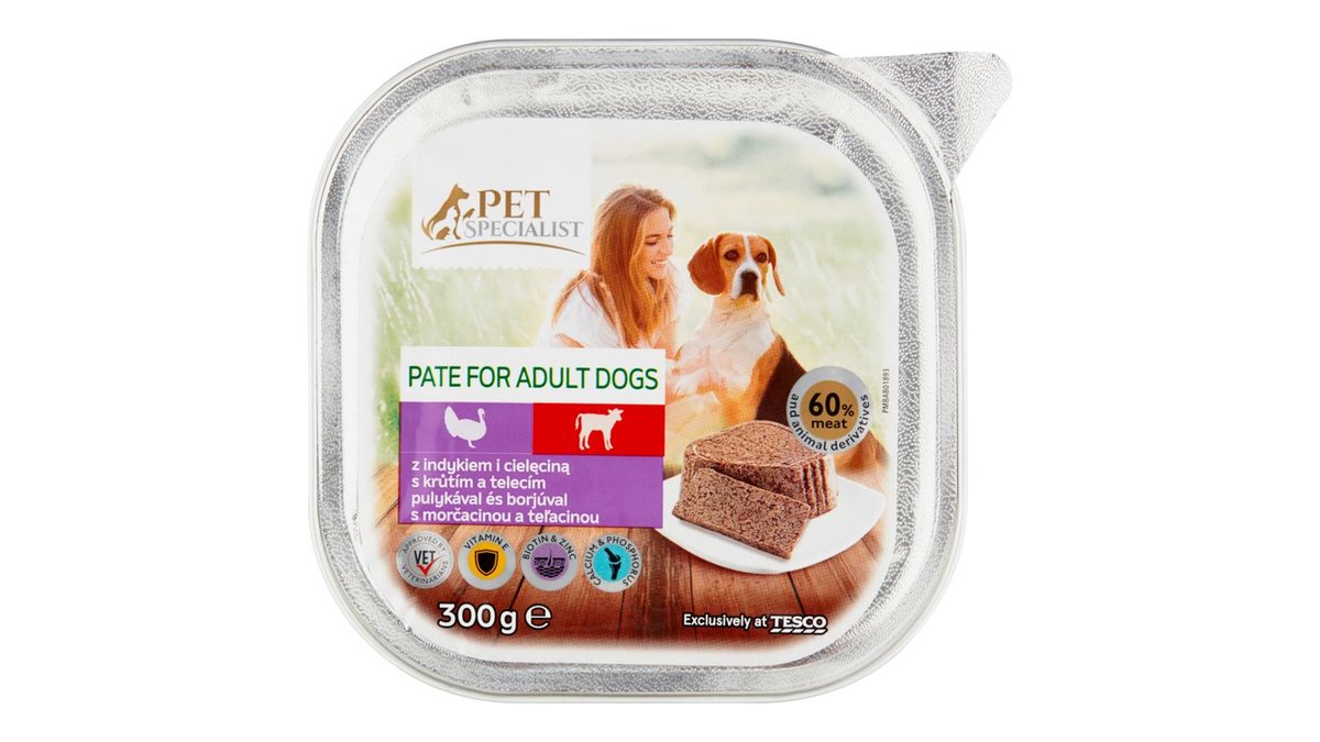Tesco Pet Specialist teljes értékű állateledel felnőtt kutyák számára pulykával és borjúval 300 g