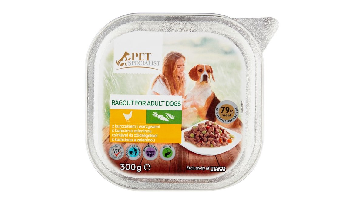 Tesco Pet Specialist teljes értékű állateledel felnőtt kutyák számára csirkével & zöldségekkel 300 g