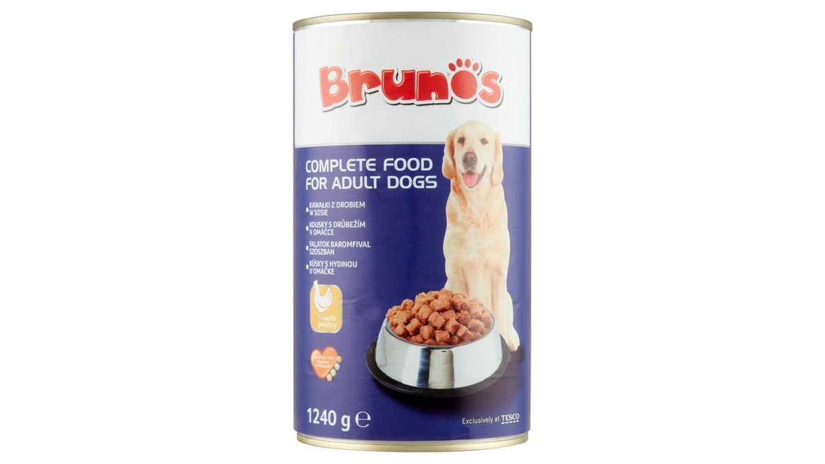 Brunos teljes értékű állateledel felnőtt kutyák számára, falatok baromfival szószban 1240 g