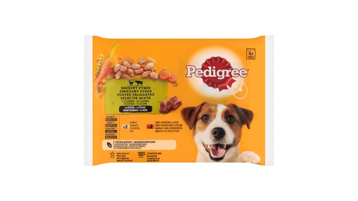 Pedigree Vegyes Válogatás teljes értékű nedves eledel felnőtt kutyák részére (4 x 100 g), 400 g