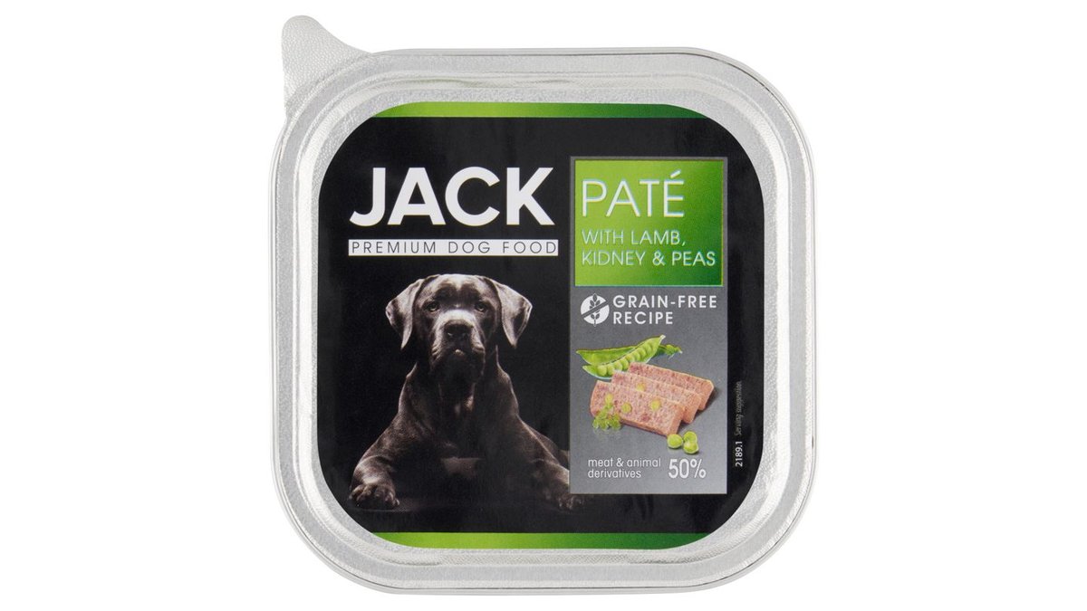 Jack premium pástétom bárányhússal, vesével és zöldborsóval kutyáknak 150 g