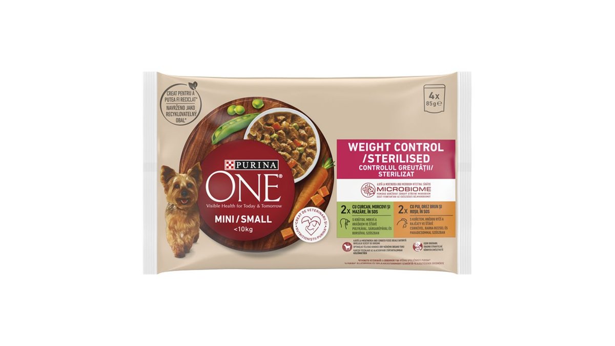 Purina One Mini Weight Control/Steril pulykával és csirkével nedves kutyaeledel 4 x 85 g (340 g)