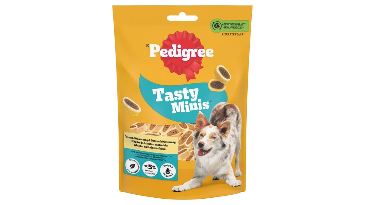 Pedigree Tasty Minis marha és sajt ízesítésű kiegészítő állateledel felnőtt kutyák számára 140 g