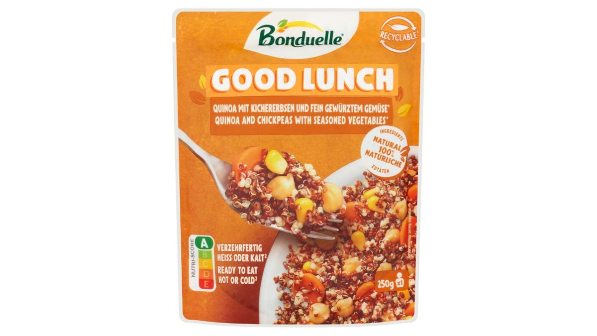 Bonduelle Good Lunch sárgarépa, csicseriborsó, kukorica és quinoa keveréke olívaolajjal 250 g