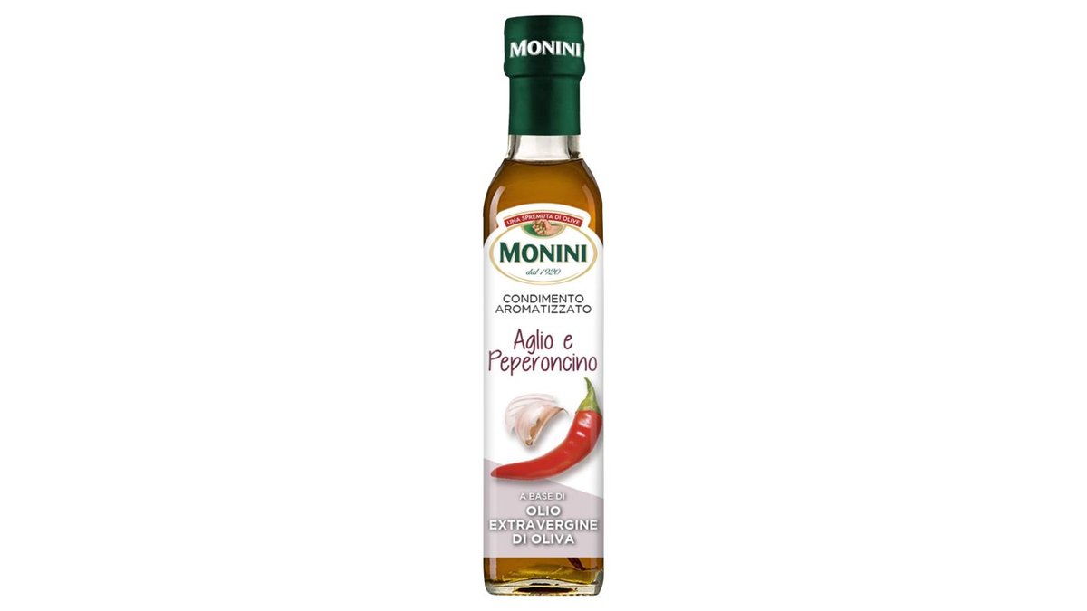 Monini fokhagyma és chilipaprika-aromával ízesített extra szűz olívaolaj-alapú öntet 250 ml