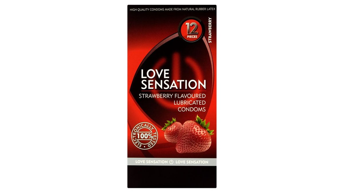 Love Sensation extra adag síkosítóval ellátott, eper ízesítésű óvszer 12 db