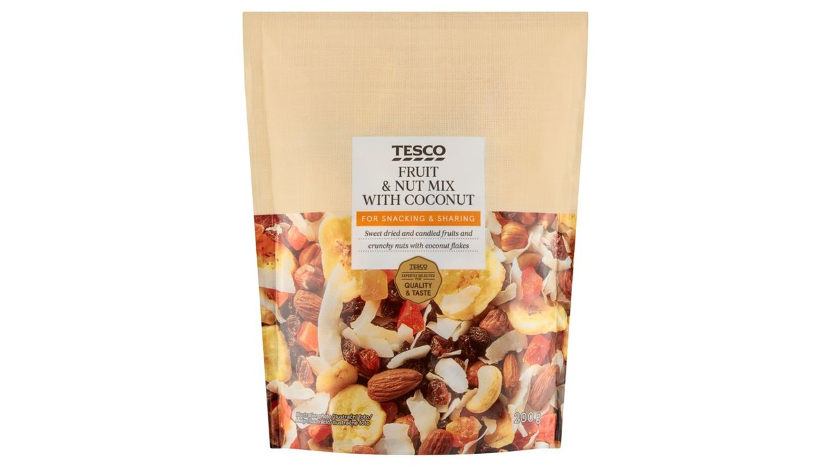 Tesco aszalt és kandírozott gyümölcsök, diófélék és kókuszpehely keveréke 200 g