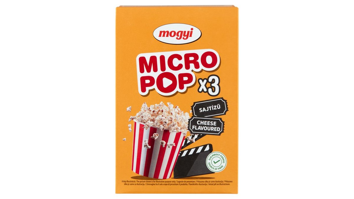 Mogyi Micro Pop mikrohullámú sütőben elkészíthető sajtízű pattogatni való kukorica 3 x 100 g (300 g)