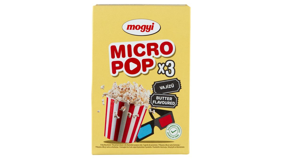Mogyi Micro Pop mikrohullámú sütőben elkészíthető vajízű pattogatni való kukorica 3 x 100 g (300 g)