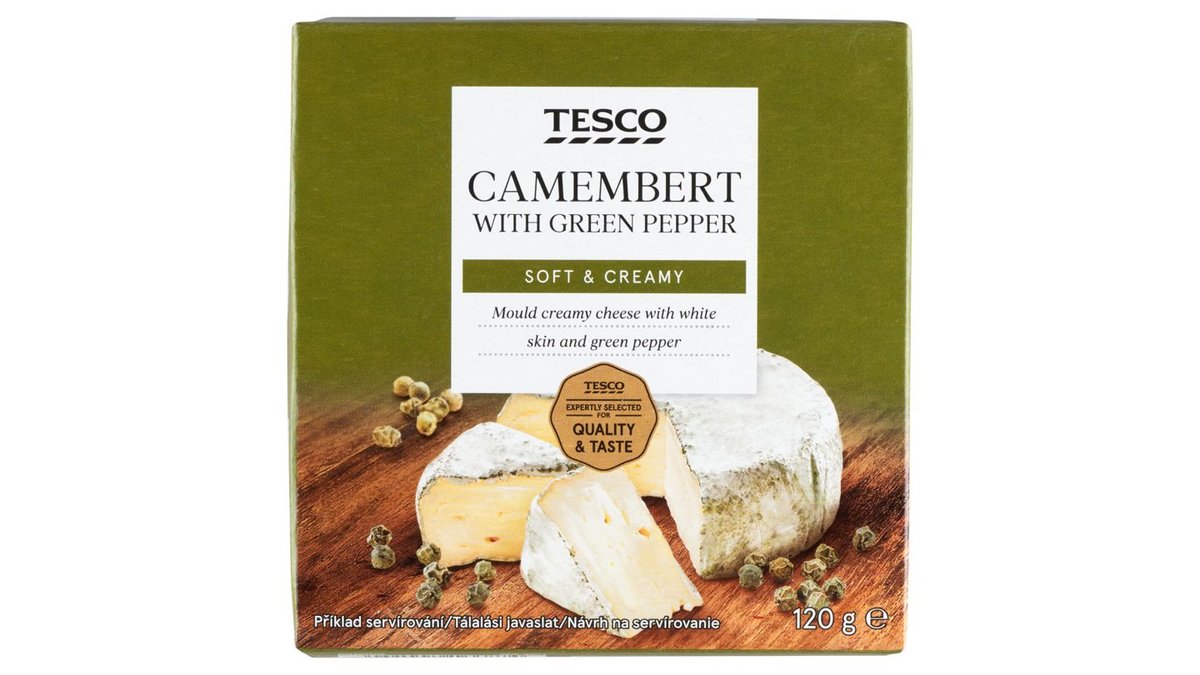Tesco fehér nemespenésszel érő lágy, zsíros sajt zöldborssal 120 g