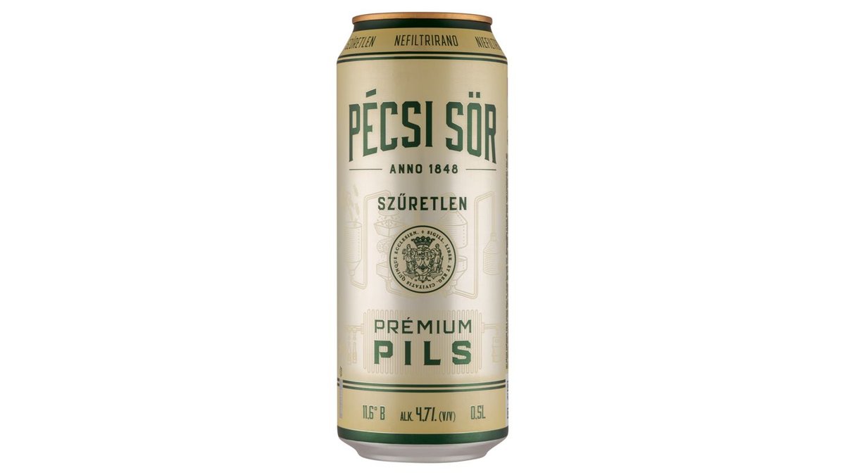 Pécsi Sör Prémium Pils szűretlen minőségi világos sör 4,7% 0,5 l