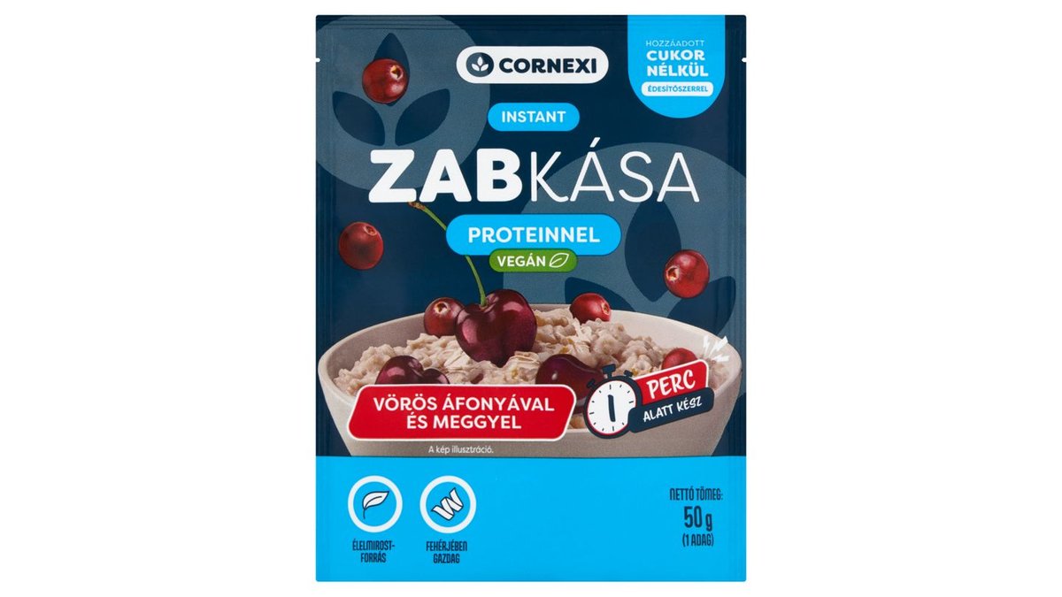 Cornexi vörös áfonyás-meggyes instant zabkása proteinnel hozzáadott cukor nélkül édesítőszerrel 50 g