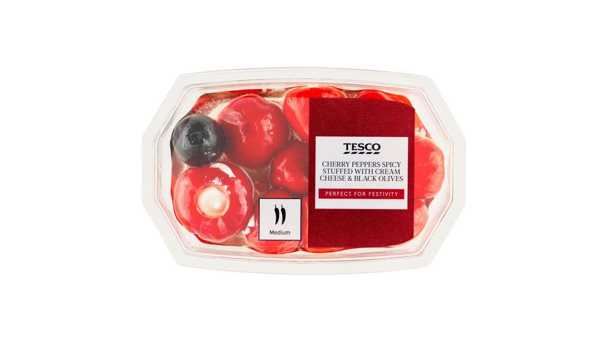 Tesco krémsajttal töltött marinált cseresznyepaprika & magozott fekete olívabogyó repceolajban 150 g