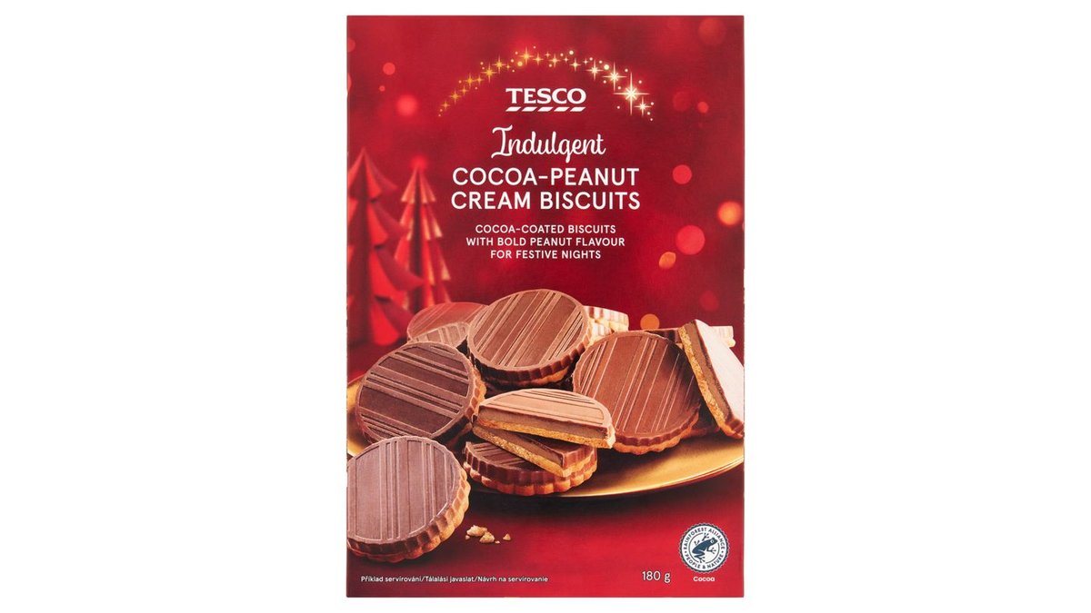 Tesco keksz kakaós-földimogyorós töltelékkel kakaós bevonattal 180 g