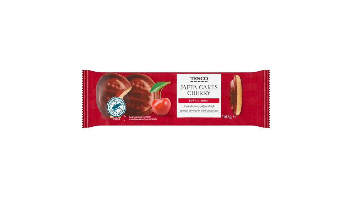 Tesco étcsokoládéval bevont piskótatallér meggyes zselével 150 g